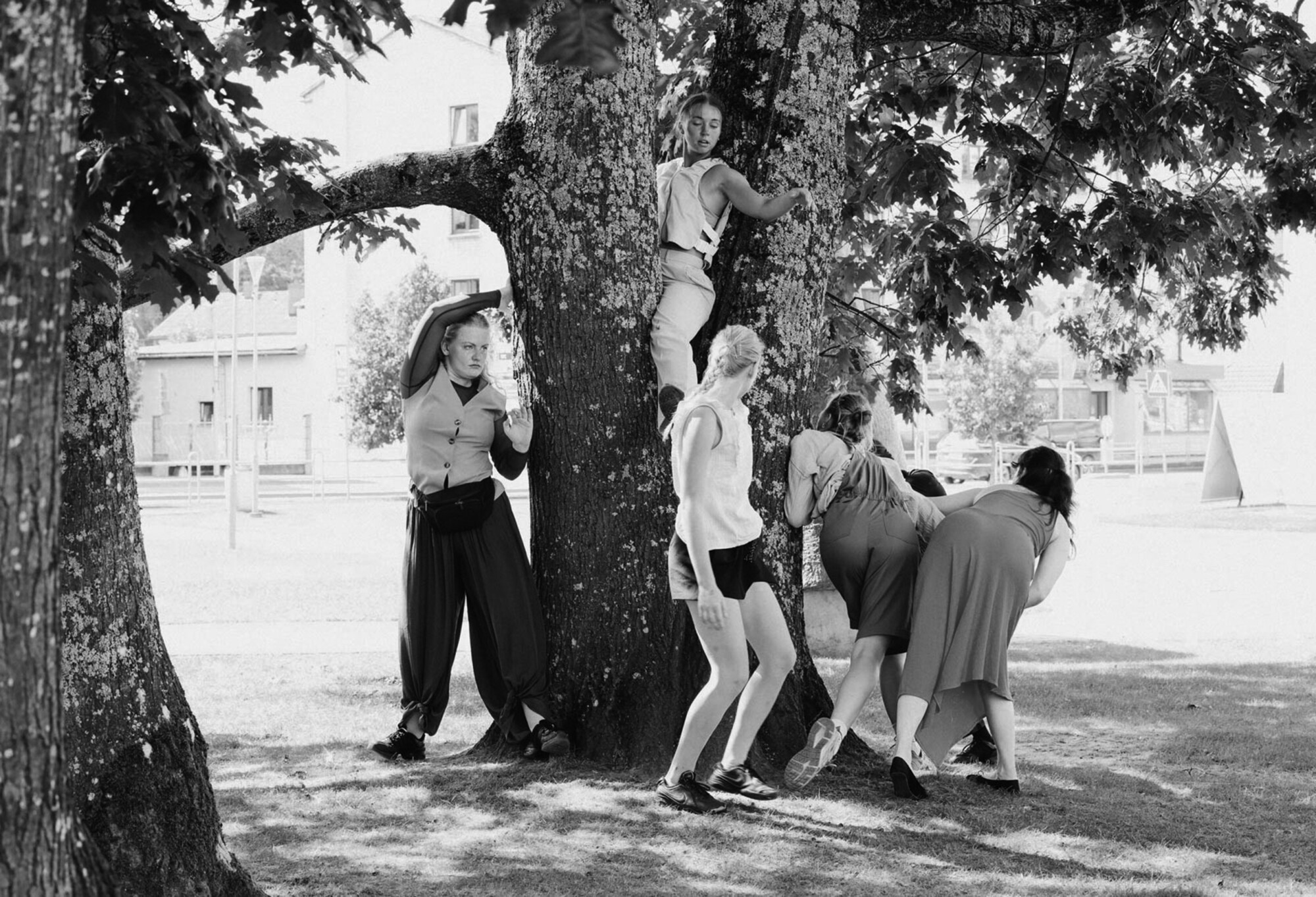 Braucot mājās, domāju par to, cik patiesībā būtiski ir tas, ka festivāls piedāvā platformu, kurā bērnu auditorija tiek likta vienā kategorijā ar pieaugušo un tiek radīti domājoši, sirsnīgi un asprātīgi darbi. Itāļu režisores Katerinas Moroni un Sabīnes Alises Ozoliņas veidotajā poētiskajā dumpī Ziedēšana un posts tas atklājās vēl citā līmenī. Tā bija ekskluzīva iespēja aktieru vietā redzēt vietējos bērnus, kas tērpti maskās un lien laukā no krūmiem. Bērni, pārbaudot skatītāja pulsu, izvēlējās savu sabiedroto, lai dotos kopīgā pastaigā/ misijā pa pilsētu. Atlika vienīgi ļauties, uzticēties un sekot. Tā bija aizraujoša un patīkama sadarbība bez vārdiem, kas negaidīti aizveda bērnībā. Skatītāji kopīgi lēca tikai pa baltajām gājēju pārejas līnijām, skrēja lejā no kalna, spieda dzīvnieku pēdas uz trotuāra, dejoja un pēc griešanās uz riņķi atgūlās zemē. Kopējā noskaņa bija mistiska un patīkama. Novērtēju, cik profesionāla un organiska bija skatītāju iesaiste. Tikai īsti līdz galam nekļuva skaidrs, kādēļ izrādei dots šāds nosaukums. Jo, ja neskaita koka lapu salīdzināšanu ar plaukstu dzīves līnijām, priekšplānā izvirzījās nevis dabas vai ekoloģijas jautājumi, bet uzticēšanās aspekts. Izrādes noslēgumā gan katram tika iedota bērnu veidotā avīze Valmiera 2050, kurā viņi izteikuši prognozes par nākotni un lietām, kas viņus uztrauc, taču to varētu skatīt arī kā atsevišķu radošo procesu.