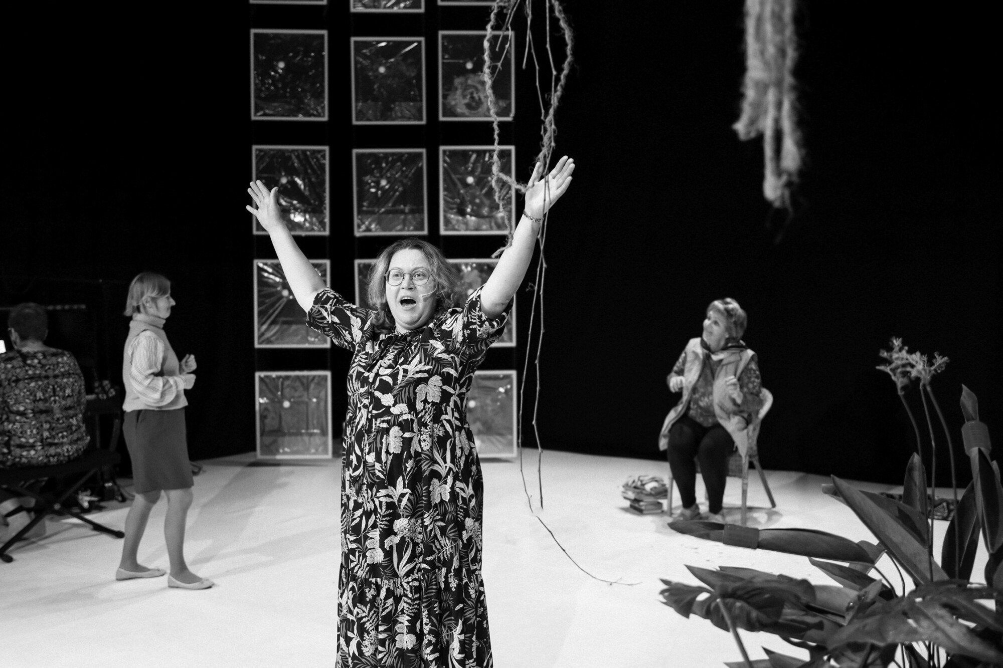 Ar interesi gaidīju pieredzi, ko solīja Barbaras Lehtnas ĢIT iestudētās kameroperas Monstera Deliciosa pārcēlums uz Daugavpils teātra lielās skatuves. Izrādes mājvietā Rīgā skatītāju vietas ir uz podestiem un izrādes telpu iespējams vērot nedaudz no augšas, bet lielākā tuvplānā. Savukārt Daugavpils teātra lielajā zālē skatītāji attiecībā pret spēles laukumu sēž apakšā. Manuprāt, skatītājam šādā izkārtojumā attiecības ar izrādi veidojas distancētākas un nedaudz atsvešinātākas. Taču tieši izrādē Daugavpilī sajutu skatītāju humora izjūtu, precīzi uztverot valodiskās un idejiskās asprātības libreta tekstā. Pēc izrādes tikšanās laikā vairāki skatītāji atklāja, ka sākumā izrāde esot viegli šokējusi, jo licies neiespējami kameroperā klausīties stāstus par tualešu apkopēju dzīvi. Tomēr atbruņojošā cilvēcība, kā arī īstu sieviešu un īstas realitātes atklāšanās šādā uzvedumā vairākiem skatītājiem izrādījās negaidīts pārdzīvojums, apzinoties, cik ļoti izrāde aizkustinājusi arī viņu pašu emocijas. Jāatzīmē, ka aktrises un vienlaikus dziedātājas, veidodamas saskanīgo ansambļa darbu, arvien ir lieliskas savās lomās – vienkāršas, mierīgas, bet pašapzinīgas.