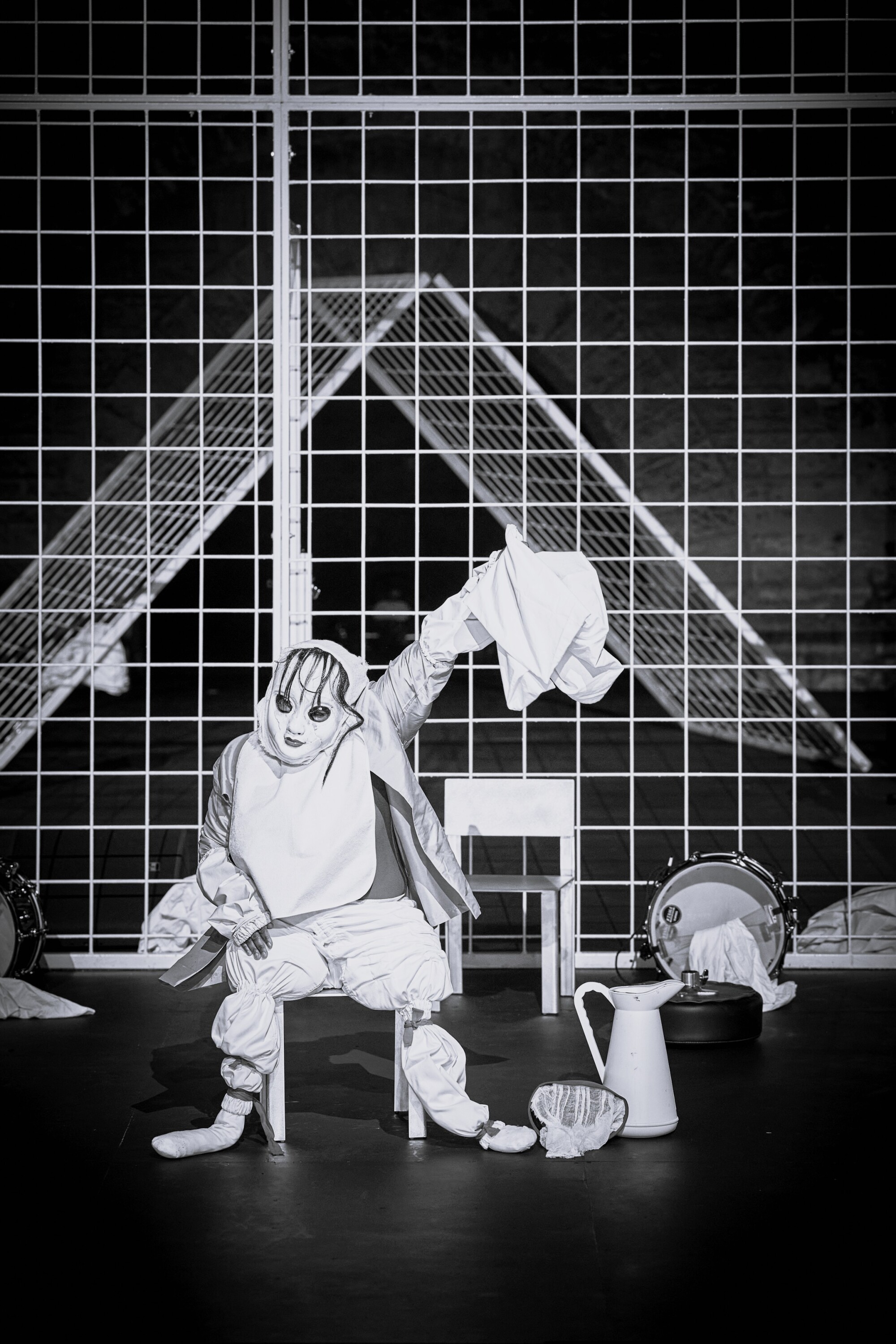 Marlēnes Monteiru Freitašas izrādi NÔT, kas ir veidota fiziskā teātra estētikā, noskatījos divas reizes, un katru reizi skatīšanās pieredze bija krasi atšķirīga, taču ne tādēļ, ka pēc pirmizrādes būtu kaut kas mainījies pašā izrādē, bet gan tādēļ, ka mainījās mans skatītājas skatu punkts. Tas vien liecina, cik ļoti ir iespējams meklēt, pazust un atrast šajā izrādē. Tās nosaukums Kaboverdes kreoliešu valodā nozīmē «nakts», un par izrādes pamatmateriālu tiek izmantots viens no arābu tautas zināmākajiem darbiem – Tūkstoš un viena nakts. Šī pasaku sērija vēsta par sievieti vārdā Šeherezāde, kura, lai izvairītos no nāves, ko viņai lēmis sultāns Šahrijārs (valdnieks, kas zvērējis katru rītu nogalināt sievu, ar kuru apprecējies iepriekšējā dienā), izstrādā viltīgu plānu. Ik vakaru viņa iesāk stāstīt pasaku un līdz rītam atstāj to nepabeigtu. Šāda bija arī sākotnējā NÔT izrādes koncepcija (to māksliniece atklāj intervijā), tomēr Marlēne Monteiru Freitaša šo ideju pārvērta citādā pieredzē – par nakti, kas piepildīta ar murgiem.[1] Tajā groteskais saplūst ar radikālo. Pāvesta pils mūri, kur notika šī izrāde, paspilgtināja un «kliedza» līdzi tam, kas notika spēles laukumā.