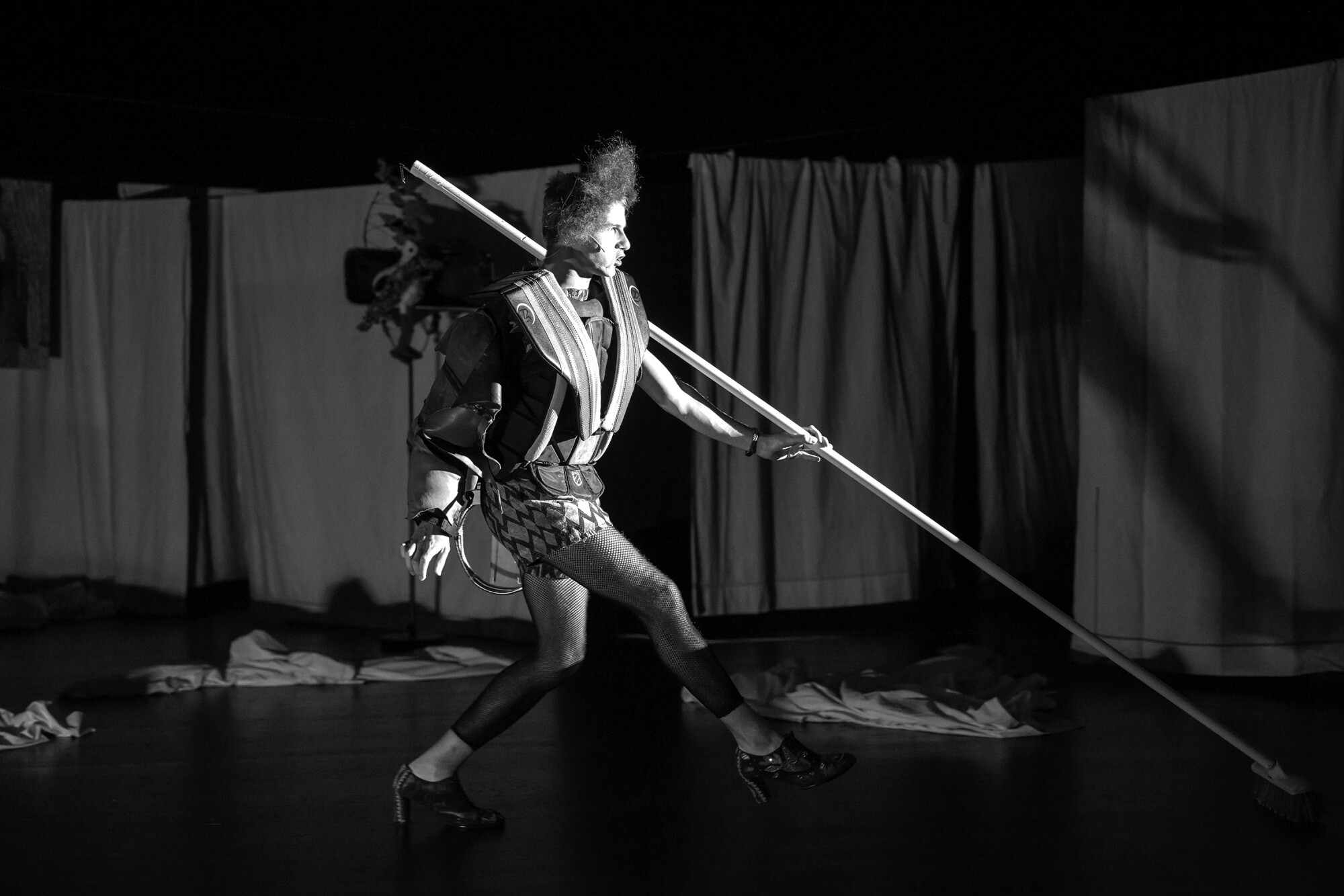 Afiša, kas mūs aicina uz izrādi 2025. gada 8. novembrī Ženviļjē teātrī T2G Parīzes ziemeļu nomalē, garāmgājējiem droši vien šķiet mīklaina. Vintāžas krāsu palete, zils debesu fons, gados jauna, bērnišķos vaibstus vēl pilnībā nezaudējuša vīrieša portrets līdz viduklim. Sarkanā kaklasaite uz baltā krekla varētu liecināt par piederību komjaunatnei. Augšup vērstais skats un akmeņozola zaru vainags atgādina viduslaiku Kristus pastišu vai slaveno kadru ar aktrisi Renē Falkoneti no Karla Teodora Dreiera filmas Žannas d’Arkas ciešanas, tomēr spīdums acīs vēsta par skaudru melanholiju, skumjām vai klusu pārmetumu.